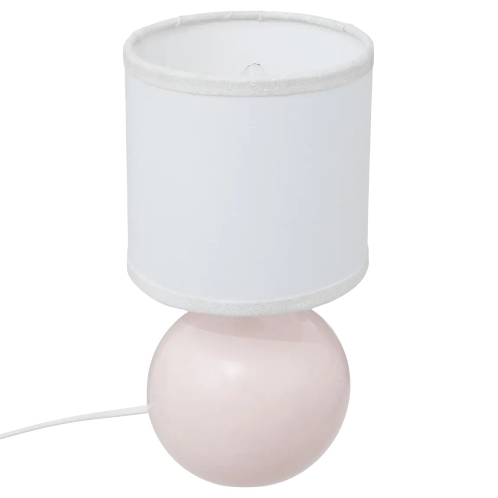 Table lamp with E14 holder, height 36 cm and diameter 13 cm. Consisting of a ceramic body and a pink textile lampshade, it offers soft lighting and a warm atmosphere - ideal for dressers, bedside tables or relaxation corners.