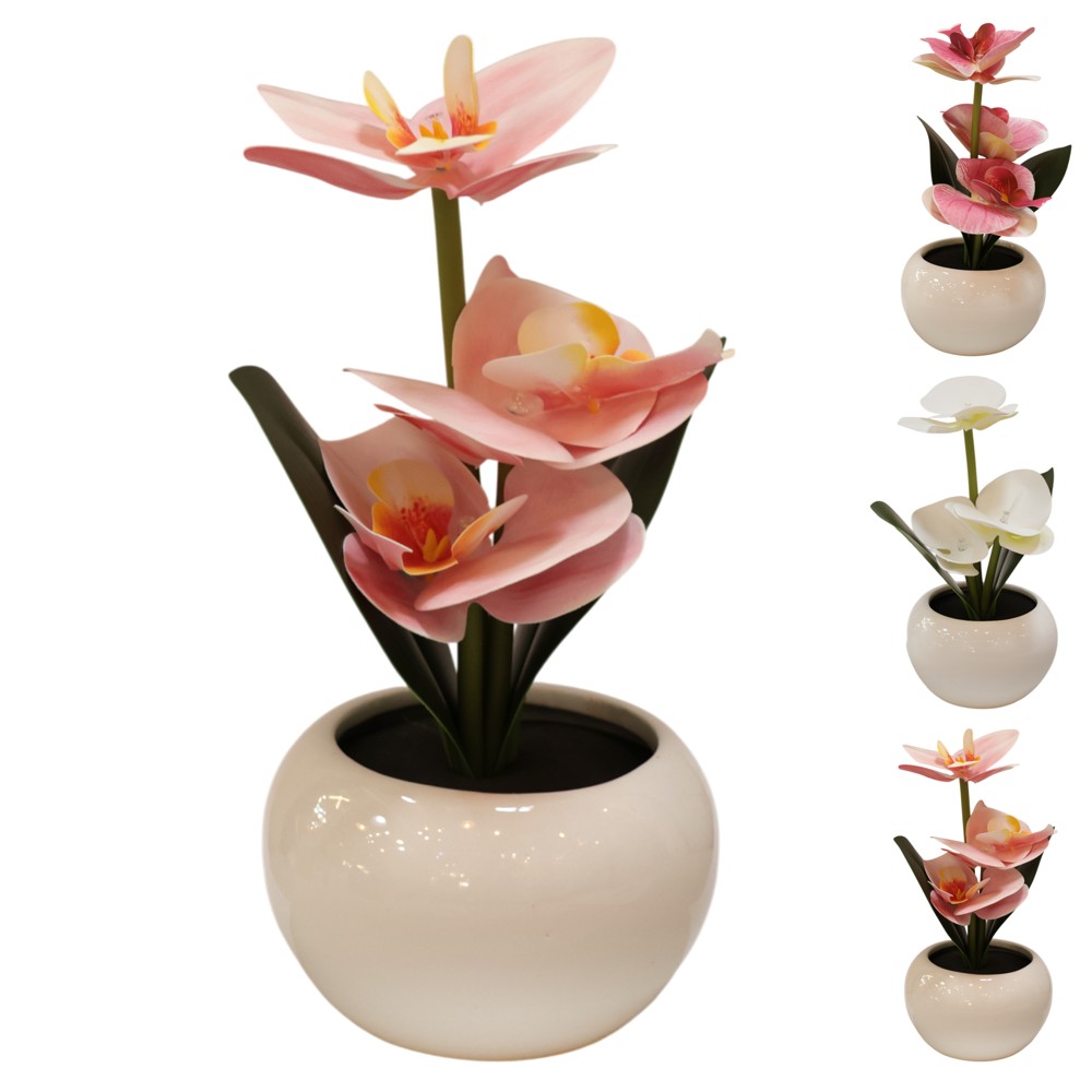 Table lamp, Orchid, 9x25cm, battery operated – a lamp with a beautiful orchid-shaped design, which offers a warm and elegant atmosphere. With dimensions of 9x25 cm and battery operation, this lamp is ideal for use on tables, shelves, or as a decoration for various environments. Working without the need for a connection to the electrical network, it is very practical and flexible for different spaces. Perfect for bedrooms, living rooms or other indoor environments.
