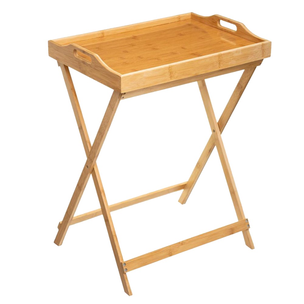 Table tray, foldable, bamboo, natural, 50x35xH65.5 cm