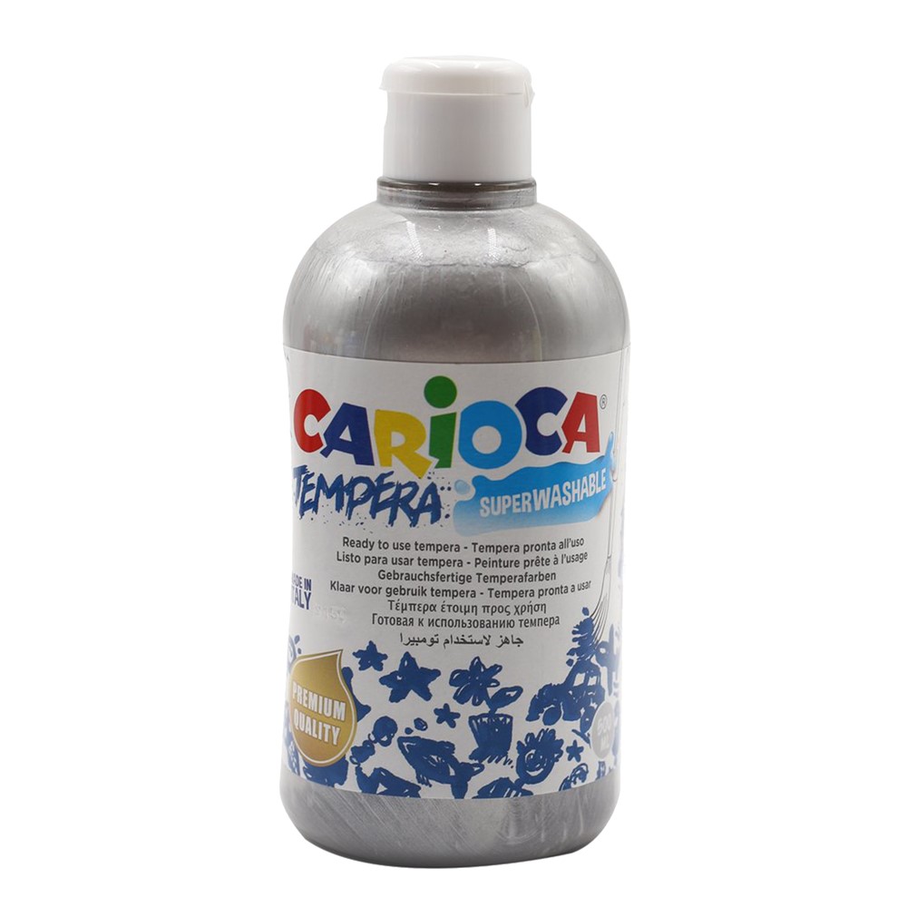 Tempera paint for children, in 500 ml package made of plastic material, in silver color, with non-toxic composition, which does not cause skin irritation. The paint is used by children in kindergartens and schools, for painting or for coloring other artworks, and it is suitable for application on canvas, cardboard or thick sheets of paper. This product is suitable for use by children over 3 years old.