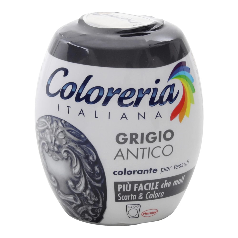 Coloreria textile dye is a product used to bring back the color of clothes and different textile materials. This paint comes in grey, is easy to use and offers the possibility to improve the appearance of old materials.