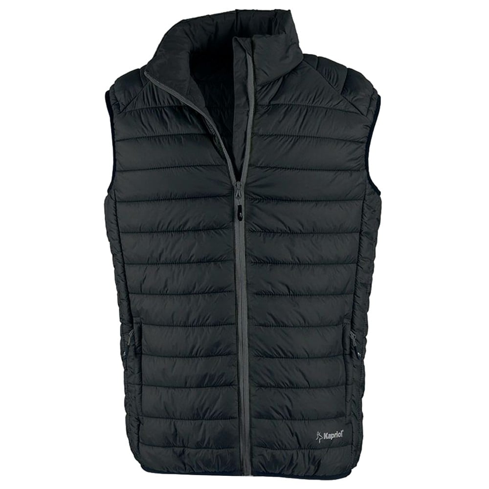 Practical vest for versatile use, made of soft fabric and light filling, easily compressible, soft. Available in different colors and ideal for outdoor activities and entertainment. Specifications: Padded hood, wrists, back and hem of hood with elasticated pockets, zipper. Material: Base fabric: 100% polyester 50D WR, 60g/m². Filling: Soft. Lining: 100% taffeta.