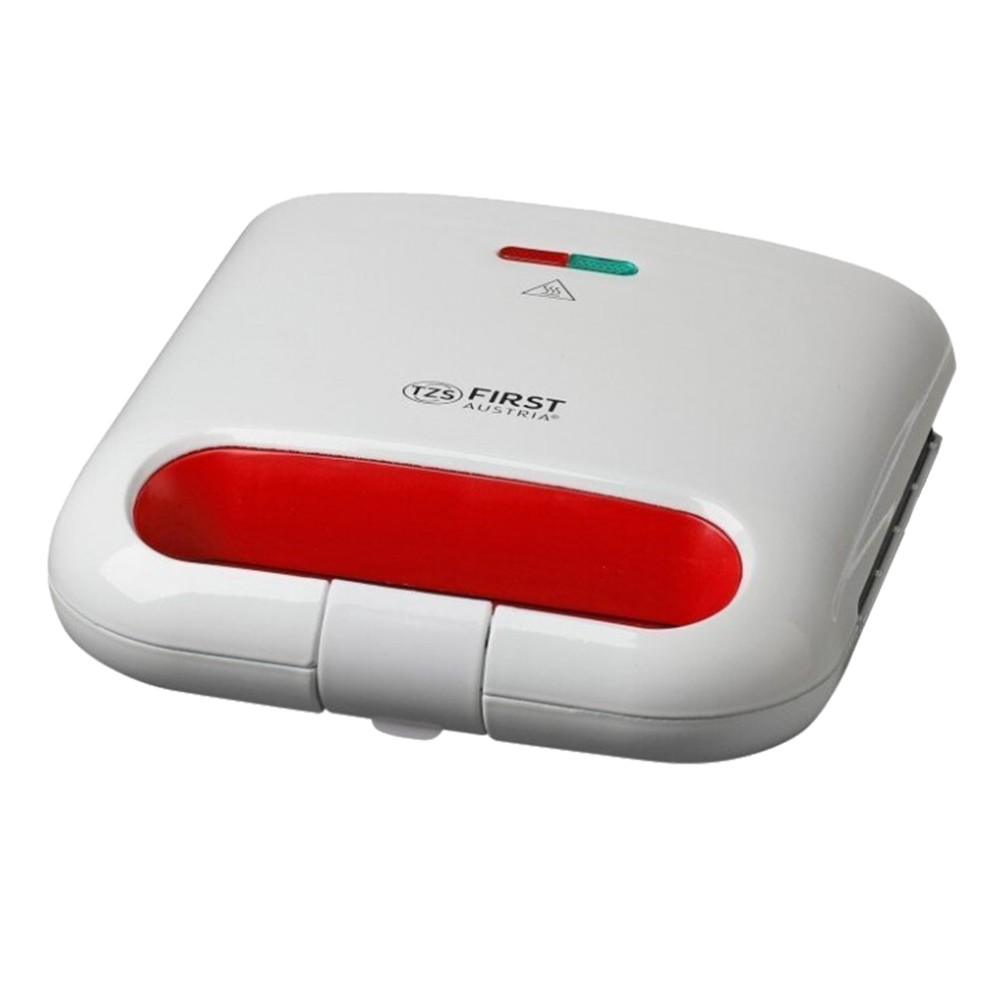 The sandwich maker can be used for preparing sandwiches and grilling and is also suitable for large sandwich toasts. The die-cast aluminium plates are ready for use and heated in seconds. The white plastic housing does not get as hot as an equivalent metal housing. The sandwich maker has a sleek, modern design in glossy white. The cable drum is conveniently attached to the underside of the appliance base.