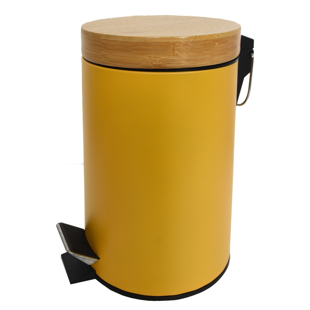 Toilet basket, 3L, metal/bamboo, yellow, 16.8xH25cm