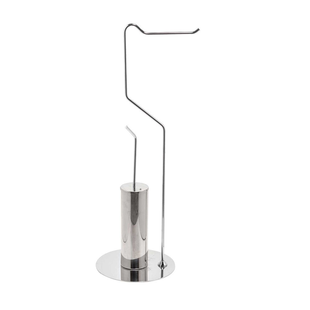 The toilet brush and towel holder allow you to organize the space inside your bathroom making it more practical and functional, avoiding holes and adhesive applications on the walls. It consists of polished steel material, a toilet brush and a towel rail. This toilet brush with towel holder with its thin lines gives elegance and refinement to the bathroom. Combines easily with any furniture and accessories of your toilet.