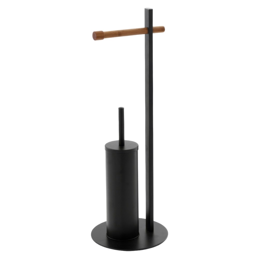 Toilet brush with holder for toilet paper designed by FERIDRAS in stainless steel material and handle for toilet paper in bamboo material. This product is as aesthetic as it is practical, fulfilling the practical needs in your toilet. The black color combined with the wooden handle will give a modern look to your furniture. Dimensions, height: 67 cm, diameter: 22 cm.