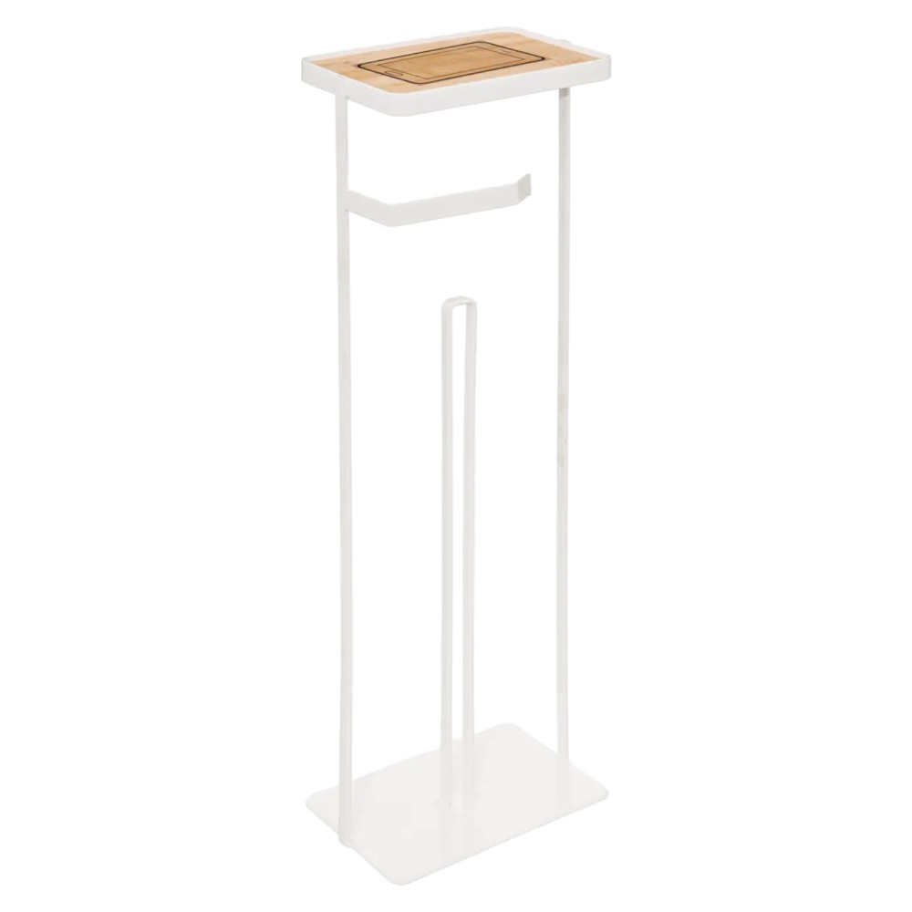 Toilet paper holder, with spare, metal/bamboo, white/brown, 18x12xH58 cm