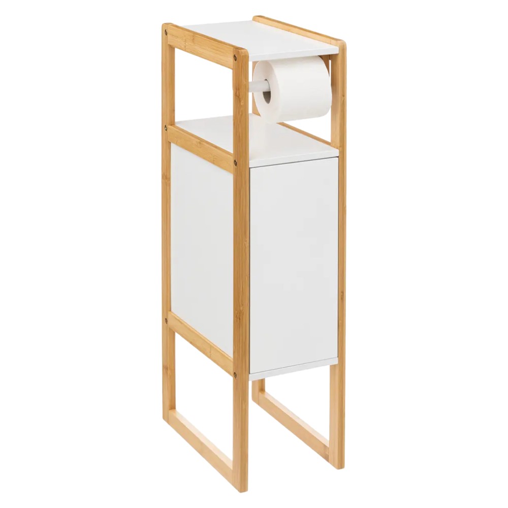 The Natureo toilet shelf is a suitable piece for your toilet, designed to provide an organized and aesthetic space. This is a structure combined from MDF (medium dense fiber) and bamboo, creating a beautiful combination of natural materials. Its color is white. With dimensions of 33x20xH80 cm, the shelf includes a holder for toilet paper and a cabinet to keep them. This model offers a stylish and practical alternative to toilet paper storage in the bathroom, while its modern styling and combination of materials make it a decorative piece as well.