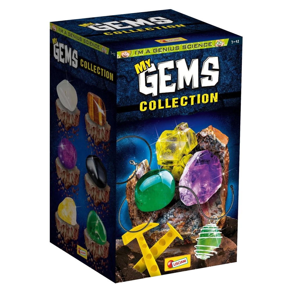A collection of 12 colorful gems to dig. Collect and transform them into fantastic pendants. High quality gemstones to be mined and turned into necklaces. Package contains digging block, digging tools, pearl, necklace, jewel case, illustrated manual.