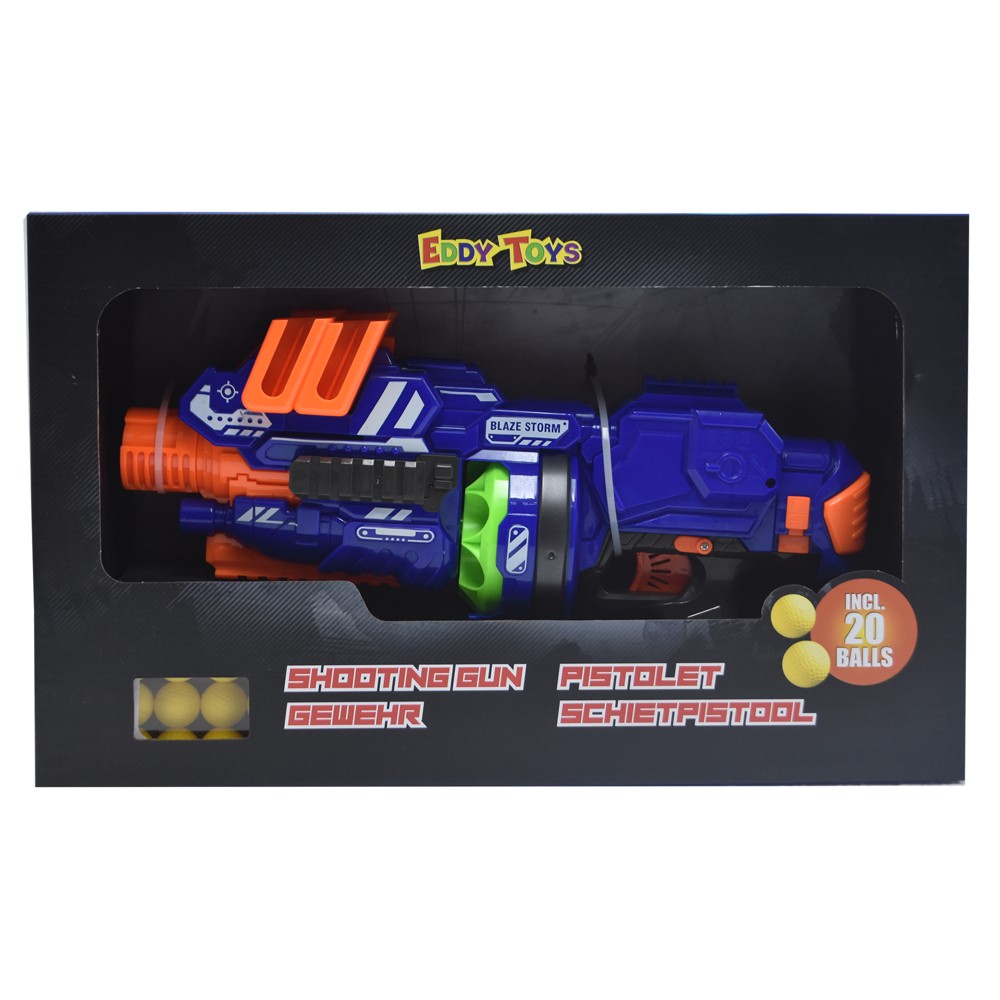 Eddy Toys foam ball guns made of ABS plastic material, with foam bullets, set includes 1 snipër rifle, 20 foam balls encourages outdoor activities engages creativity and exercises precision. Requires batteries 4x AA batteries. Batteries not included.