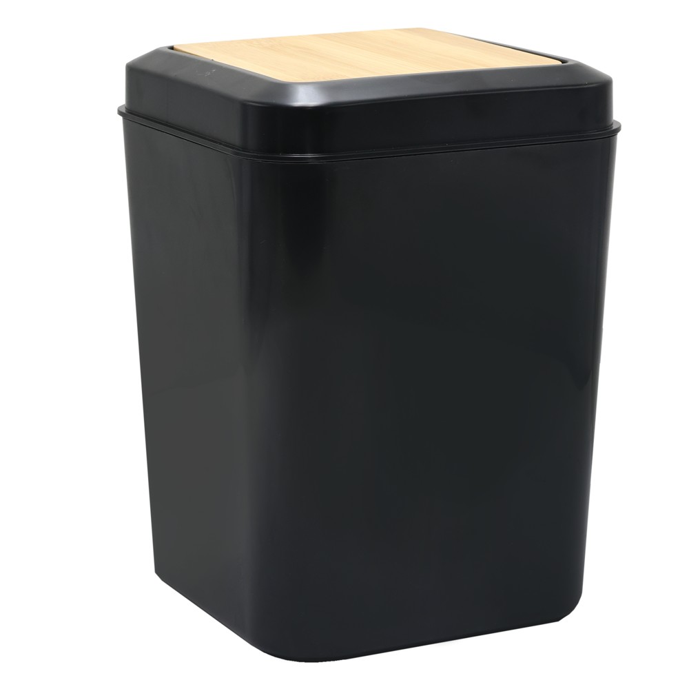 With a capacity of 12 liters, this waste bin is very compact and is therefore ideal for small spaces such as toilets, kitchens and offices. Despite its small size, the basket is very elegant and looks very luxurious due to its black color and bamboo lid. The color is perfect and can be combined with dark and light colors.