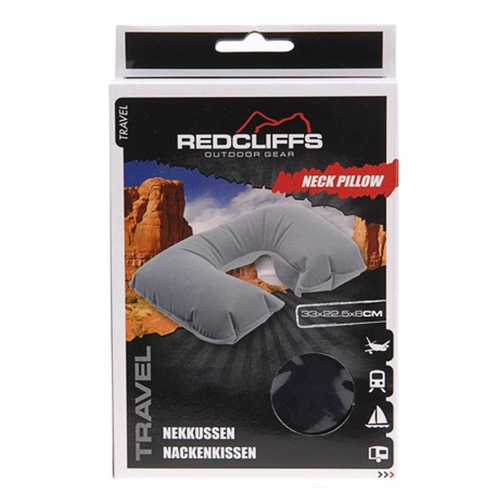 Travel pillow with air filling, made of polyester and elastane material. It has a compact size, which has made it practical for me on my own when traveling. The material is soft on the skin and is not irritating.