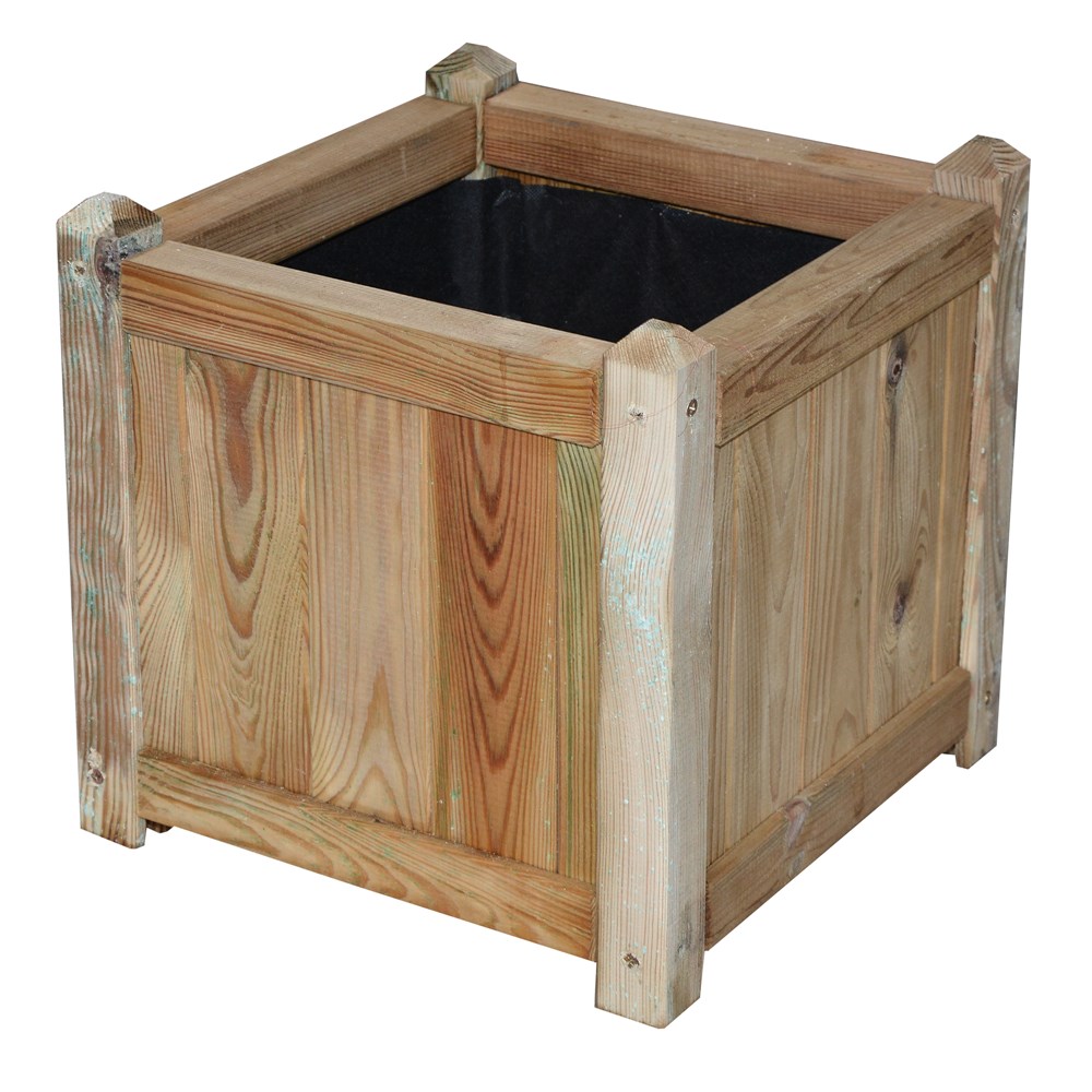 Treated wooden flower vase, 40x40 cm, square, natural color