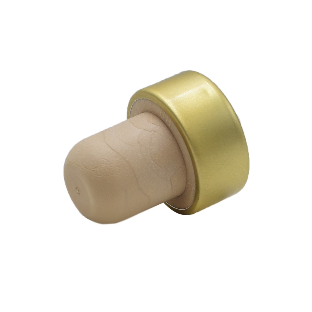 Tappi con teste in alluminio, utilizzati per chiudere diverse bottiglie. Dimensioni con d 19 mm, 29x14 mm in colore oro