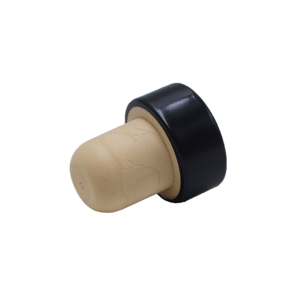 Tappi con teste in alluminio, utilizzati per chiudere diverse bottiglie. Dimensioni con d 19 mm, 29x14 mm in nero