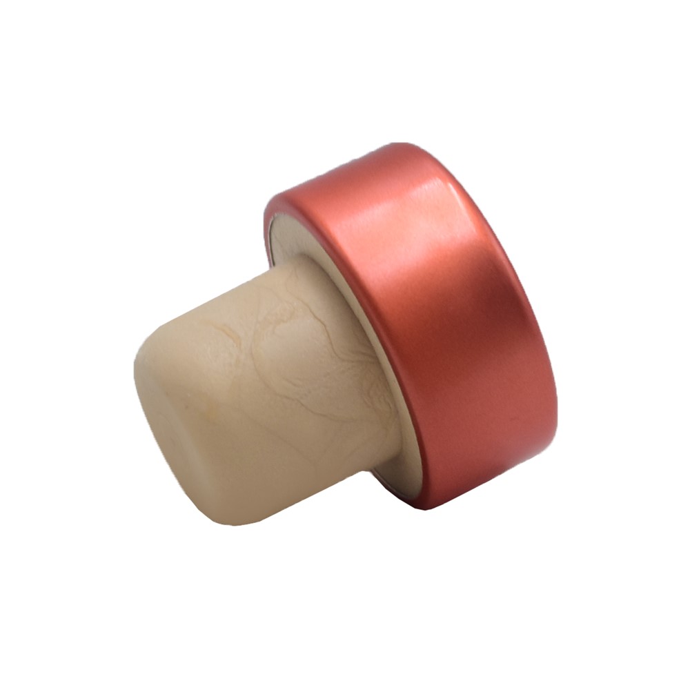 Tappi con teste in alluminio, utilizzati per chiudere varie bottiglie. Dimensioni con d 22,5 mm, 35x15 mm in color rame