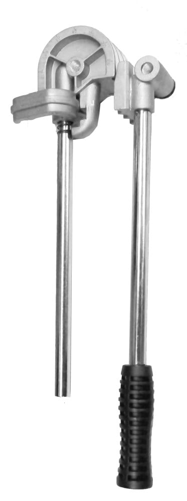 Ratchet style motion tube bending kit is an economical and effective tool for bending soft copper or aluminum tubing without kinks. Hand-operated ratchet design bends tubes easily. Carrying case stores bending tool and accessories.