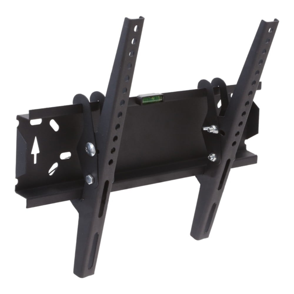 Black tiltable TV wall mount 22''-42'' with maximum load of 40kg. VESA attachments up to 300x300. Distance from the wall 25mm. Steel plate. Integrated spirit level for easy positioning. TV Size: 22"-42". Tilt: -15°/+0°. VESA mounts: 100x100 /150x150 / 200x200 / 300x300. Maximum load: 40Kg. Distance from the wall: 25mm. Fixing kit included, black finish. Dimensions WxHxD: 250x105x25mm. Net weight: 1 Kg.