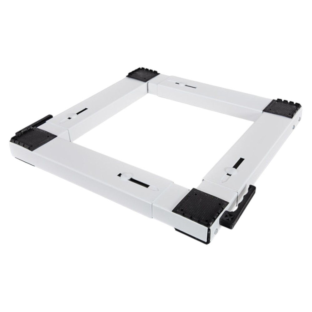 Universal wheeled anti-vibration base for appliances. Use the wheels on the bottom of the base to easily move your heavy devices forward or backward. Ergonomic brake system. Strong metal structure. Electrostatic paint resistant to heavy use. Load capacity: 250 kg. Adjustable structure 37x37cm – 62x62cm. Anti-vibration rubber feet.