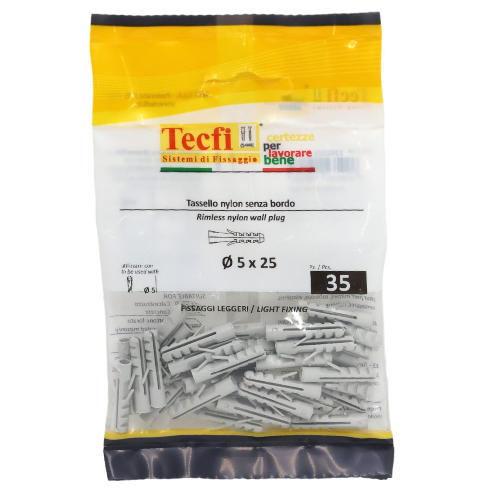 Unrimmed Nylon anchor, Ø5x25mm, Bag 35