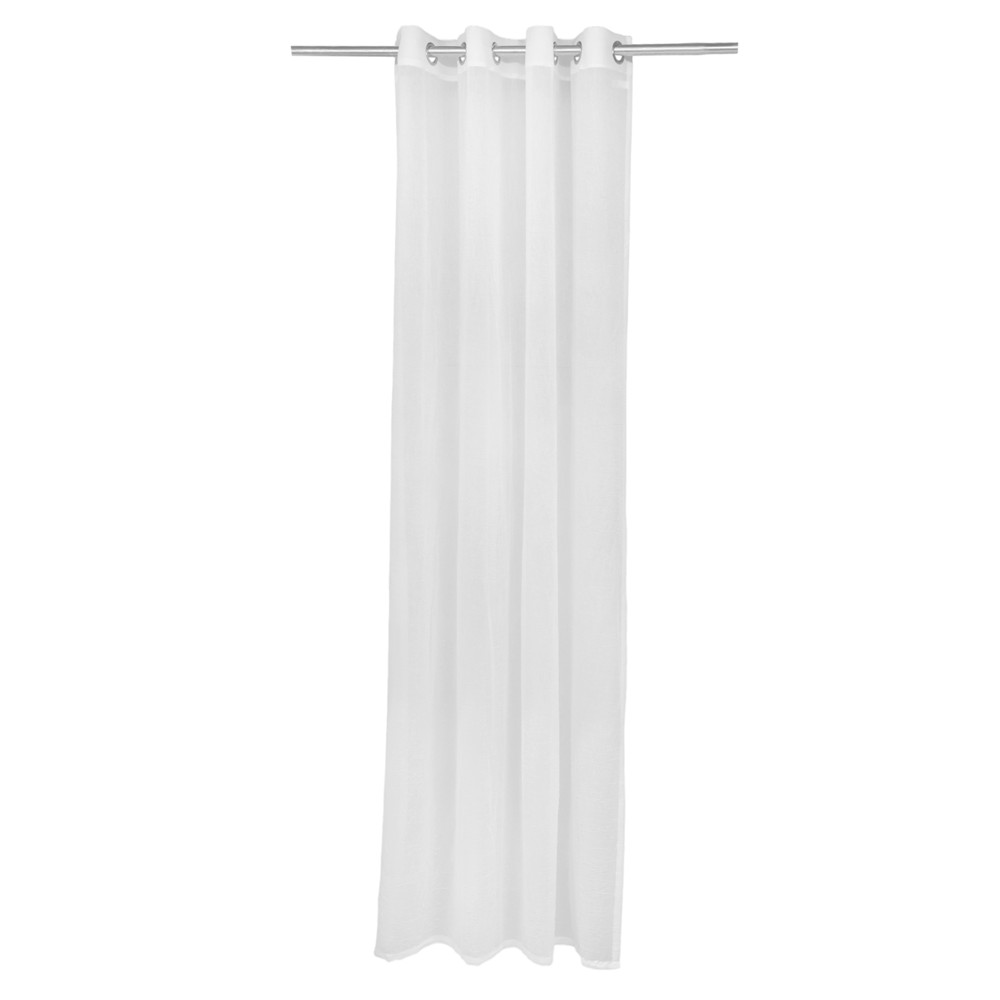 This product is a thin ring curtain, made of 100% polyester, white and 150x260 cm dimensions. Thin rings curtains are known to create a light and illuminated atmosphere at home.