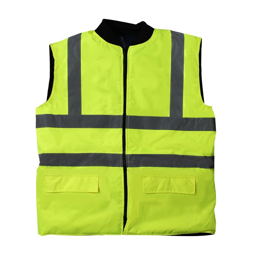 This cleverly designed, padded garment traps heat to keep you warm when worn either way. The Hi-Vis side of the garment provides added visibility and safety for the wearer when needed. Can interact with style S468.