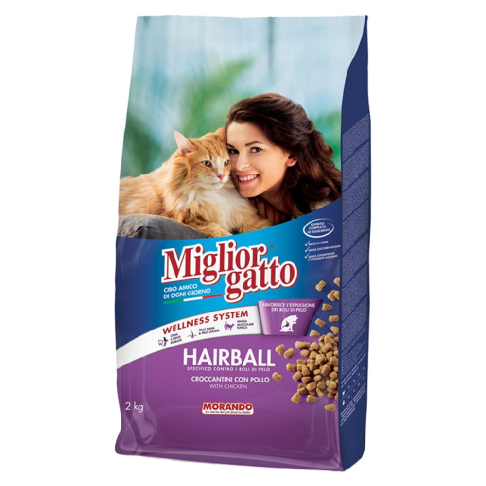 Veterinary food for cats, Miglior Gatto, 2kg, with chicken, prevents swallowed hair