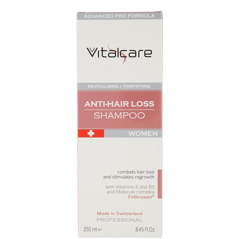 Vitalcare anti-hair loss shampoo. Promotes hair and scalp well-being. Its exclusive formula, designed to stimulate hair growth functions, is based on the revitalizing and stimulating action of hair fibers due to the FOLLICUSAN® Molecule Complex; under the antioxidant action of vitamin E and B3 and in the stimulating action of hair growth with Pea Extract.