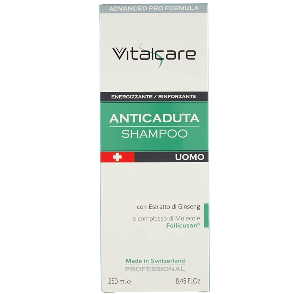 Vitalcare anti-hair loss shampoo. Promotes hair and scalp well-being. Its exclusive formula, designed to stimulate hair growth functions, is based on the revitalizing and stimulating action of hair fibers due to the FOLLICUSAN® Molecule Complex; under the antioxidant action of vitamin E and B3 and in the stimulating action of hair growth with Pea Extract.