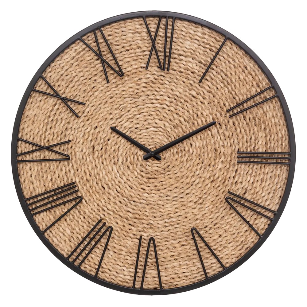 For a retro decoration that combines natural materials and colors, choose the "Nico" clock in metal and straw. The metal frame and straw face of the Nico watch make a great design duo. This model has a restrained and refined form, without extras. Its smooth frame, in the same color as the hands and numbers, as well as a simple straw background create a restrained and harmonious decorative addition.