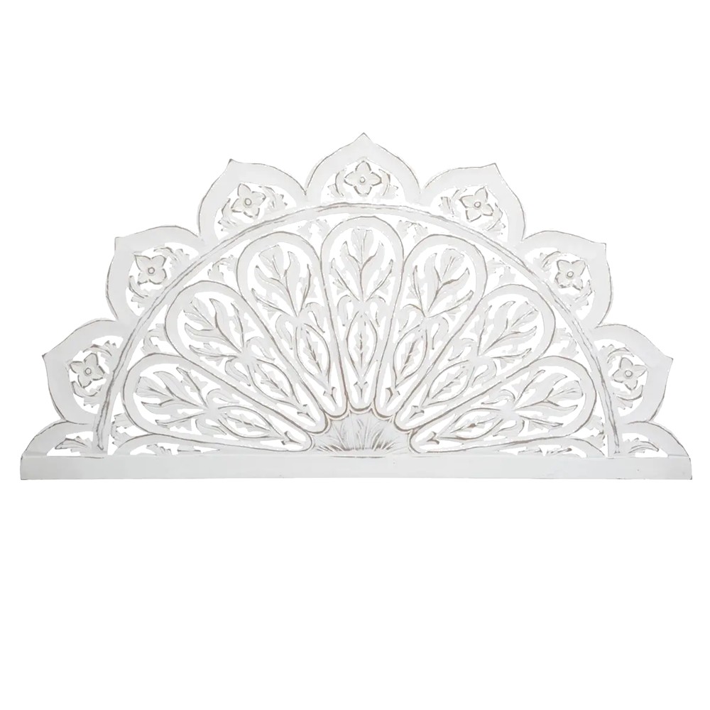Wall decor, Fanny, mdf material, white color. Size 121.1xH60.3 cm. You will be seduced by the softness and romanticism emanating from this wall decoration. Designed in enhanced carved wood with an aged effect, it will add character to your interior.