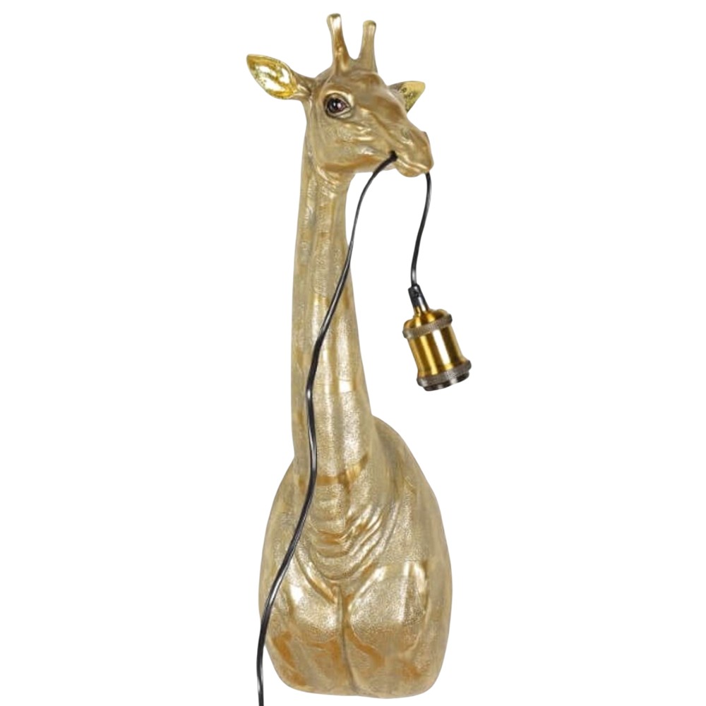 Giraffe-shaped wall light, E27, with a polyresin body, gold color, and a height of 61 cm. This light features a unique and artistic design, offering a combination of lighting and distinctive decor. The giraffe shape and gold color make it an elegant and refined choice for any space, creating a warm and sophisticated atmosphere. Ideal for spaces that require a creative and special touch.