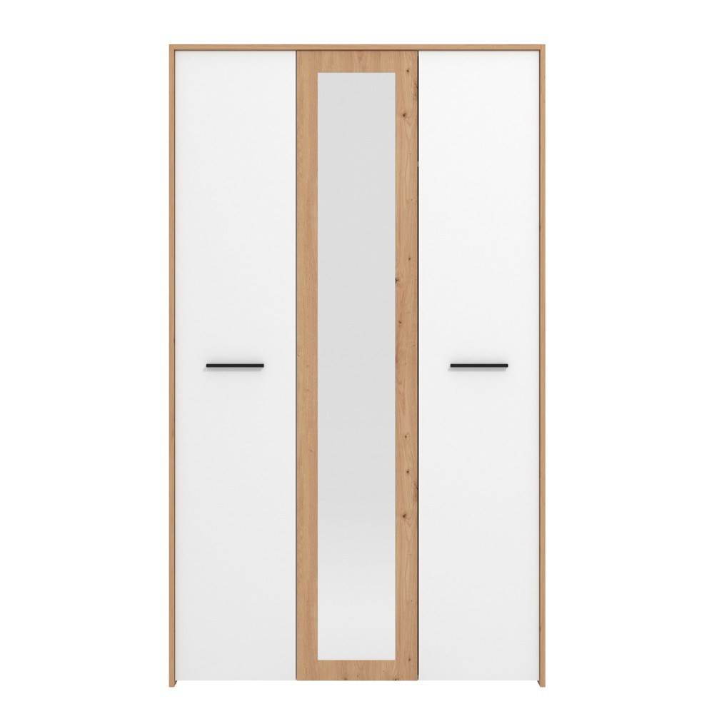 The wardrobe cabinet is welcome in any part of the house, either as a stand alone product or combined with other pieces of collection. Warm oak and opaque white harmonize seamlessly with virtually any decor. The hanging rail is ideal for storing jackets, coats and other hanger friendly clothing, while the fixed top and side shelfs suits hats, scarves and other small items. Both functional and attractive with its contemporary styling, this wardrobe is sure to enhance the look of any room in your home.