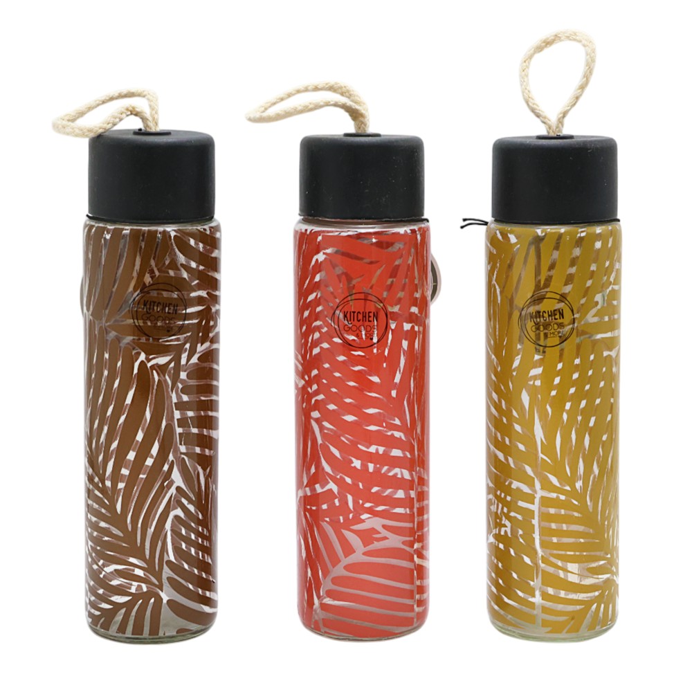 This glass water bottle, with various colors, is a practical and attractive choice for hydration throughout the day. With a diameter of 6.6 cm and a height of 6.5 cm, it is suitable for carrying in a bag or on a work table. The transparent glass allows you to clearly see the amount of water, while the various colors add a personal and appealing touch.