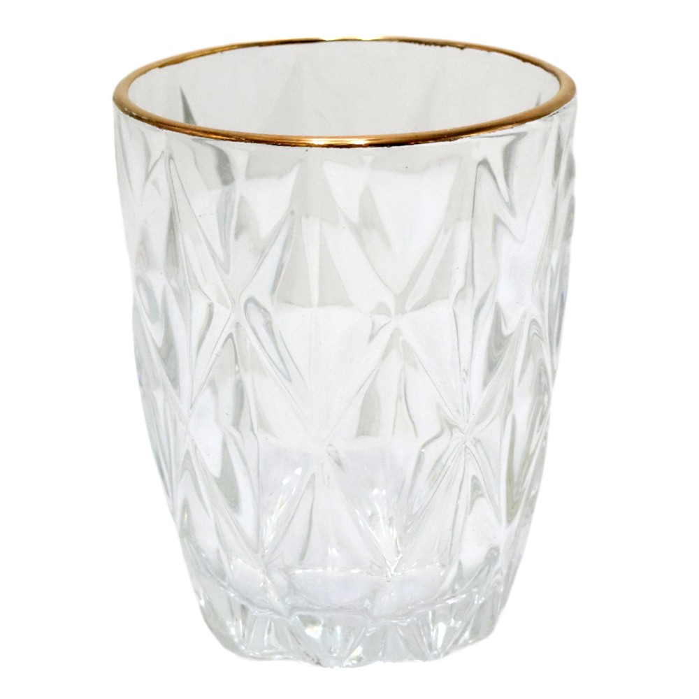 Water glass (pk 6), glass, transparent/gold border, 8x10 cm