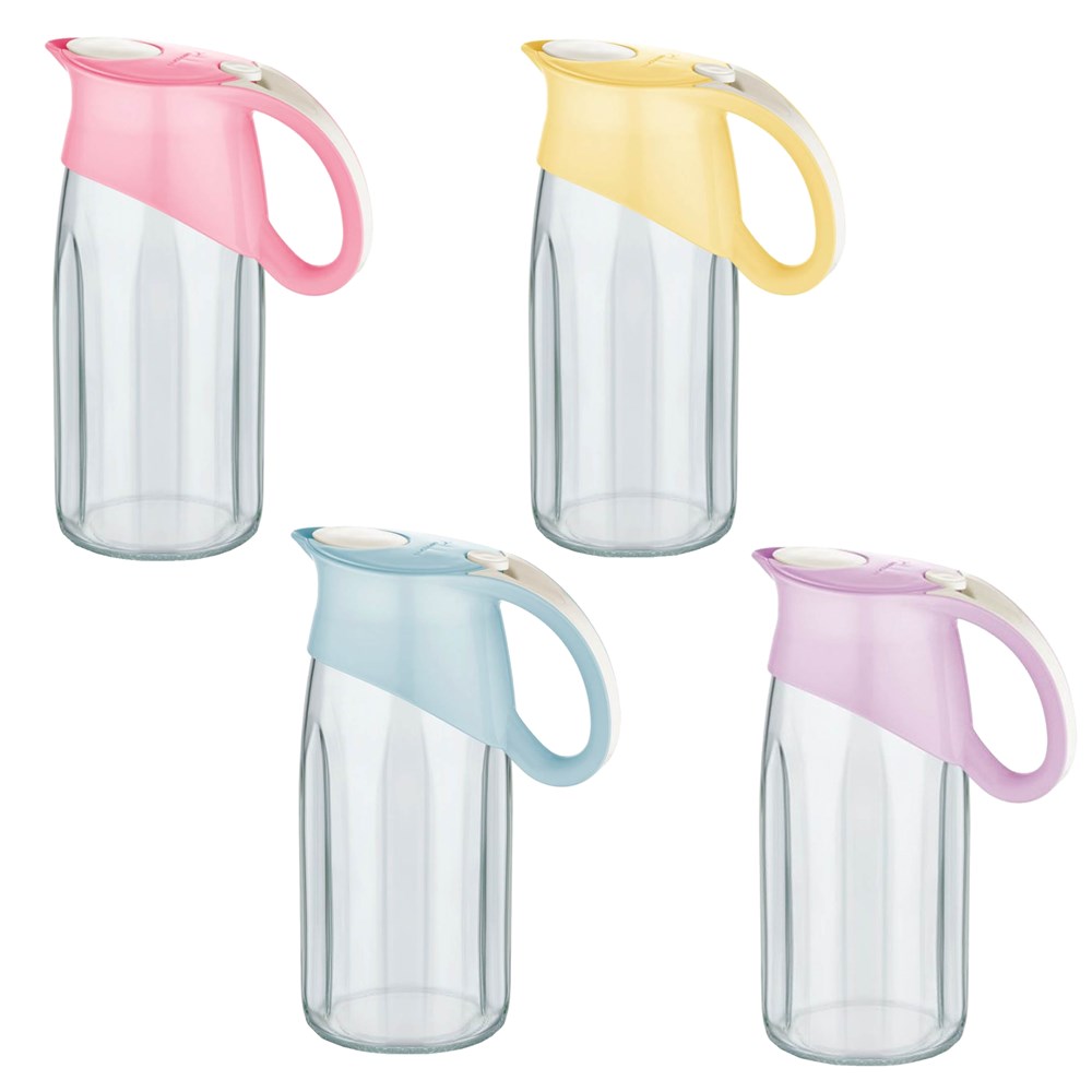 A very necessary and essential dish in your kitchen, to hold different liquids in the refrigerator. Is made of glass material, with assorted color plastic lid.