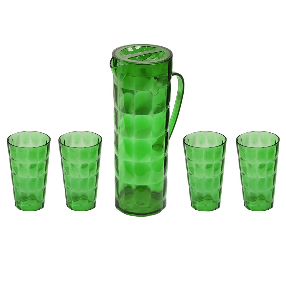 This water/liquid jug and glass set, made from durable green-colored plastic, is a practical and attractive choice for everyday use. The jug, with a capacity of 1.7 liters and dimensions of 16x10x28.7 cm, is ideal for holding water, juices, or other beverages. The glasses, with a capacity of 370 ml, a diameter of 7.3 cm, and a height of 12.5 cm, are suitable for serving cold or warm drinks. The green color gives the set a warm and natural look, making it suitable for any environment. The durable plastic ensures that the set is easy to clean and safe for everyday use.