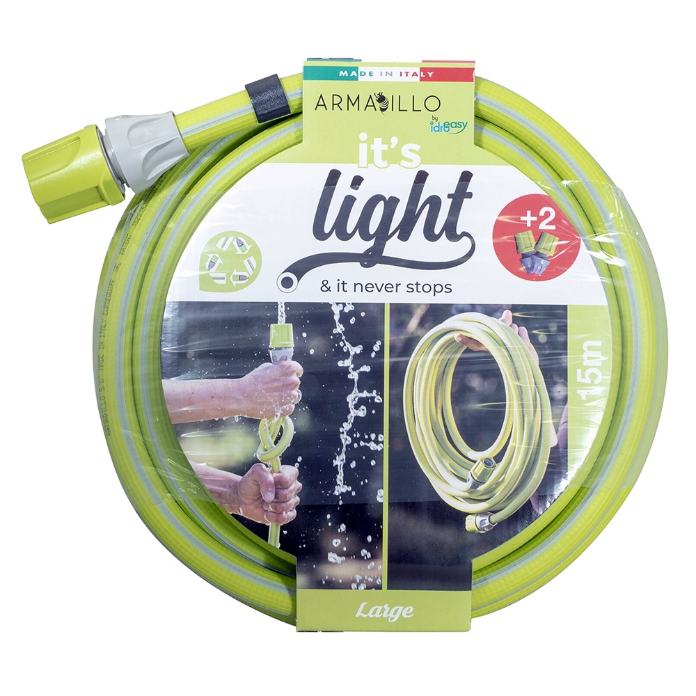 Made of elastic plastic with light weight and maximum resistance to UV radiation and degradation that comes as a result of the passage of time. With a length of 20 m and a width of 5/8". Ideal for watering green spaces and gardens in your home, business and factory. The most suitable accessory for the development and maintenance of your green space.