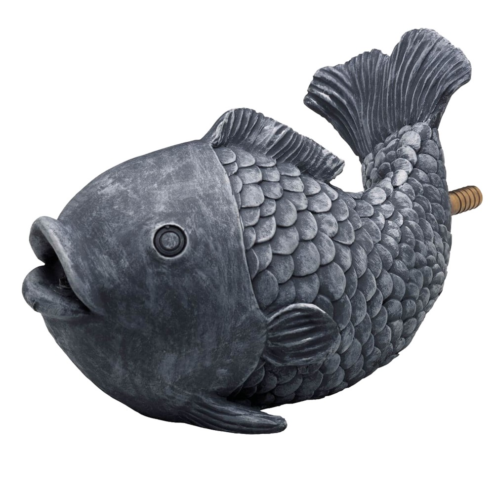 Oase Fish Water Spout is made from durable polyresin which is UV and frost resistant. This pond feature has a 13mm (½ inch) brass connection so it can be used in or beside a pond as a water feature or even just placed in your garden as a garden ornament. When connected to a pump (not included) the Oase Fish Water Spout produces a stream of water which jets into a pond creating water movement and sound whilst enhancing the oxygenation of the pond