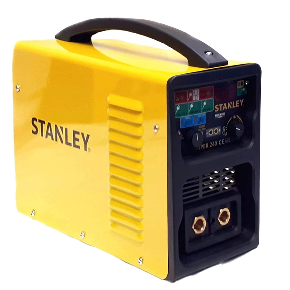 The Stanley Super 240 TIG LIFT welding machine suitable for MMA welding and thanks to the TIG LIFT function can also be carried out TIG welding, operate from 30 to 200 Amp and can be welded from 1.6 mm to 5 mm thanks to variable current, 0,5-2,4 mm (tungsten). Rutile, basic, cellulosic, stainless steel, cast iron electrodes can be used. The device is operated with 230V and has a versatility at mains voltages between 170-250V. Thanks to the high service factor, electrodes up to 2.5 mm in diameter can be welded continuously. This product is made in Italy and contains the accessories you need to work safely: welding mask, hammer brush, electrode holder and ground terminal, packaged in a handy and re-sealable cardboard box. he product impresses with its ease of use and low energy consumption and helps you to do DIY work and various repairs.