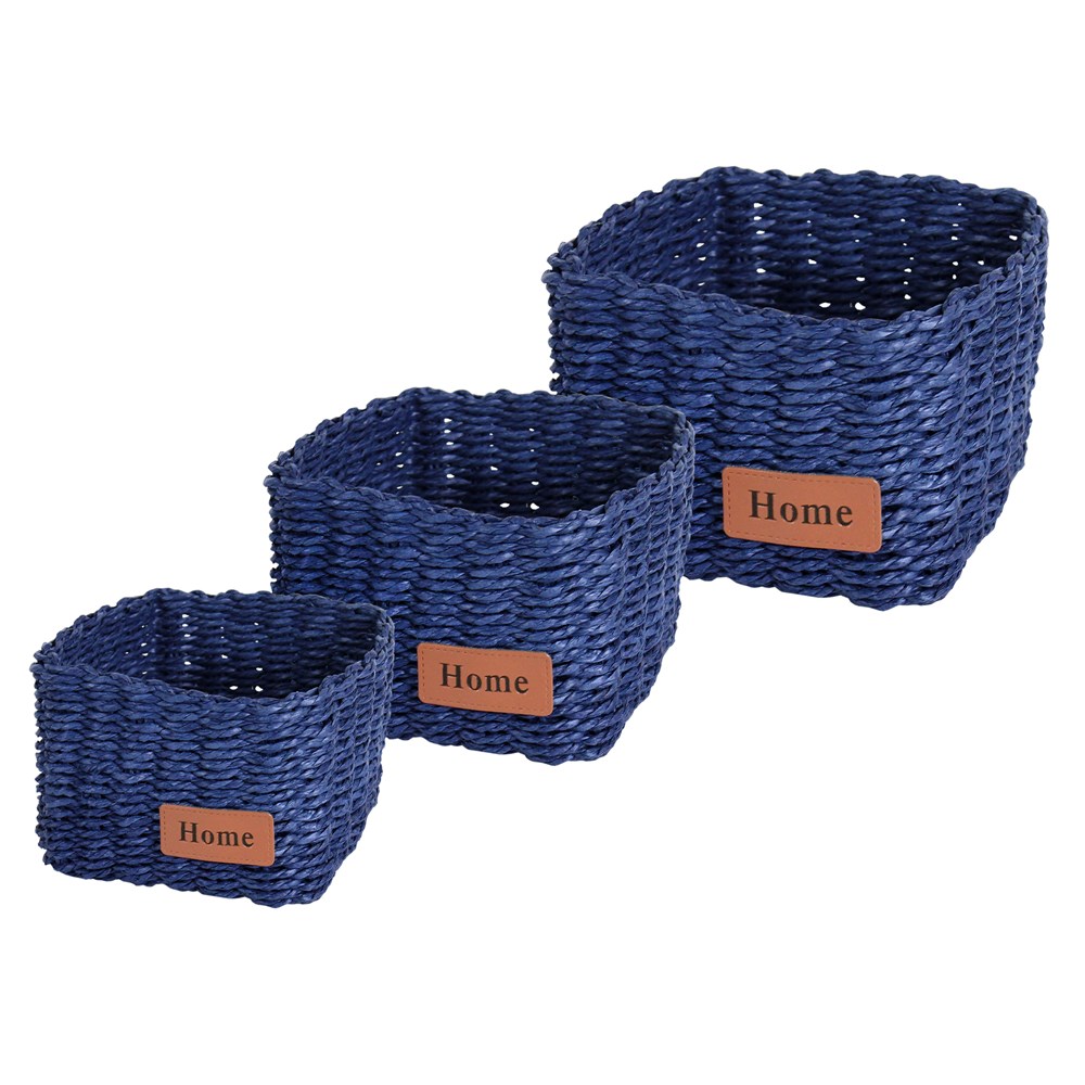 Wicker box set of 3 pieces, paper, blue, 17x17xH11 cm; 14x14xH10 cm; 11x11xH9 cm