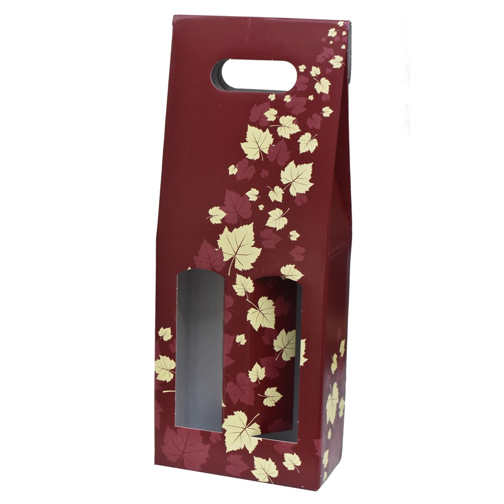 Wine box made of cardboard with handle. Ideal for gift use. The thickness of this packaging is perfect for holding 2 bottles.