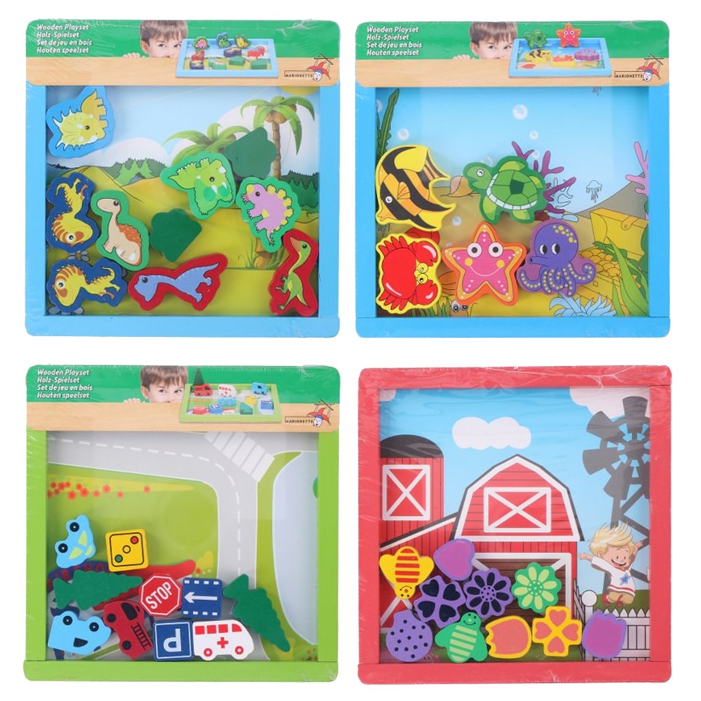 Wooden toy set with different shapes, Marionette, wood, 24x24x1.8 cm, assorted, 10 pieces