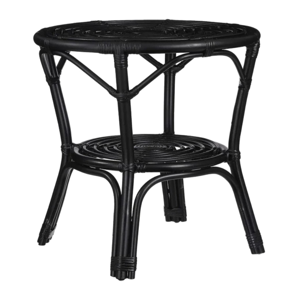 Ratani is a natural and durable material used in furniture design. The combination of natural ratan with black gives the desk a modern and elegant look. Round shape and compact table size make it suitable for use as a seat table, brown table, or even a decoration in your living space or exterior.