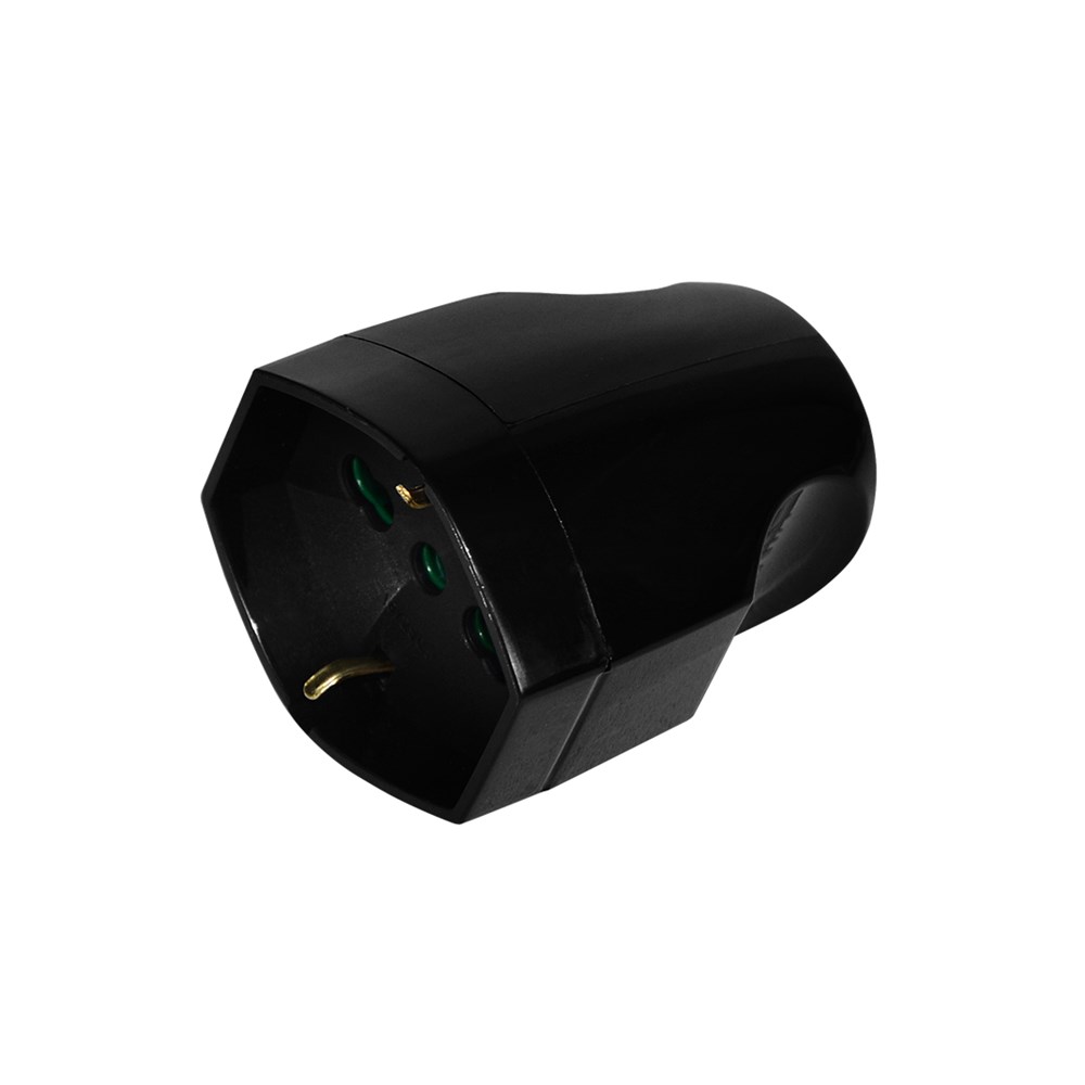 Adaptor, 16A, 1 shuko, universale, (e zezë), bakër, veshje plastike