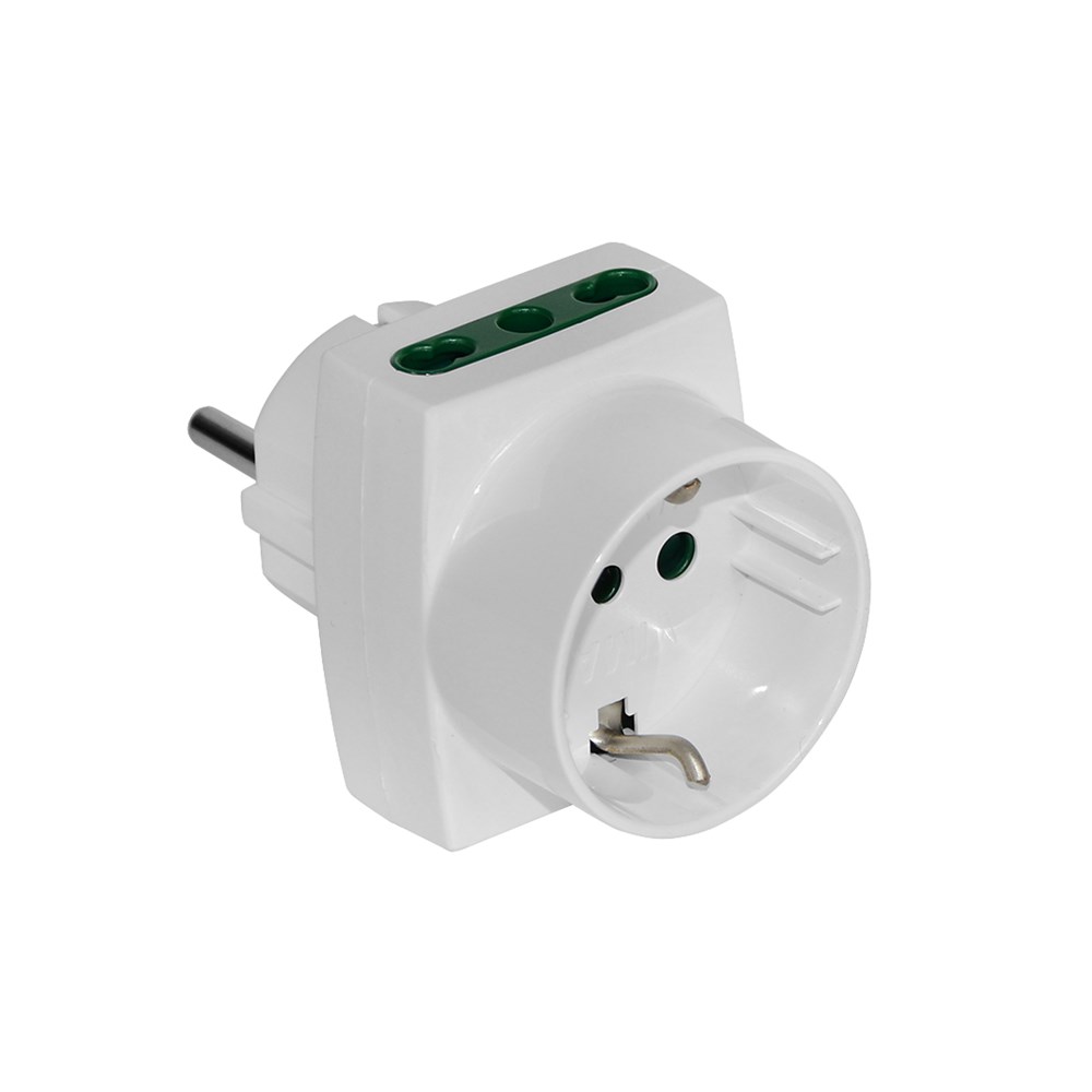 Adaptor 16A shuko në 2 bivalente +1 shuko, bakër, veshje plastike