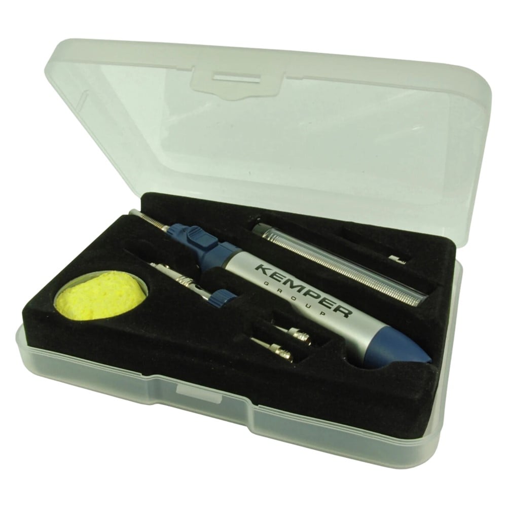 Aparat saldimi me gaz për kallaj, 8 ml, koha e punës- 60 min, temperatura e punës 550- 1300°C, në paketim janë dhe aksesorët