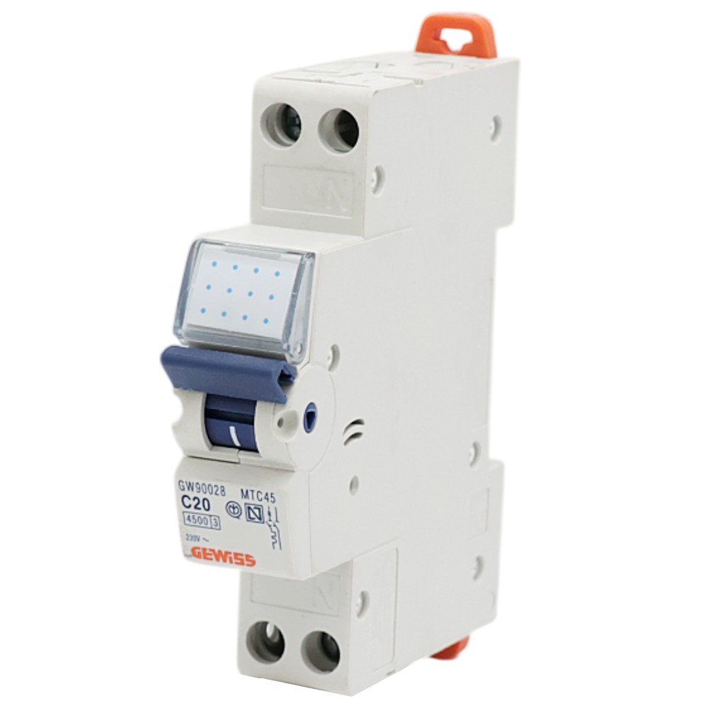 Automat magneto-termik GEWISS, 1P+N, 1 modul, C, 20A, 4.5kA. Ky automat ofron mbrojtje të sigurt dhe efikase për instalimet elektrike që përdorin një fazë dhe një neutral (1P+N). Me një kapacitet prej 20A dhe një kapacitet shkatërrimi 4.5kA, është ideal për instalime shtëpiake dhe komerciale me ngarkesa mesatare. Dizajni kompakt 1 modul e bën të përshtatshëm për tabela elektrike më të vogla, duke siguruar mbrojtje të besueshme dhe të qëndrueshme për sistemin elektrik tuaj nga mbingarkesat dhe shkarkimet magnetike.