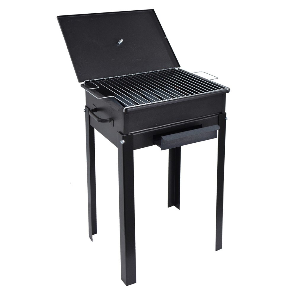 Barbekju (skarë) portative me qymyr në formë drejtkëndore, prej materiali metalik. E përbërë nga një dorezë anësore për tu transportuar më lehte. Përshtatet në ambientet tuaja, si kopshte ose ballkone, falë formës dhe përmasave të saj. E pajisur me kapak për gatim të mbyllur ose me avull dhe me dy doreza anësore për transportim më të lehtë. Nuk perfshihet pjesa e zgares. Kod sugjerues zgare 772366.