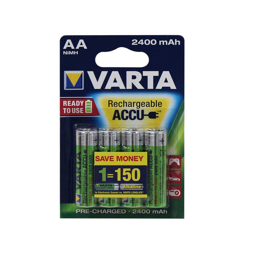 Bateri e rikarikueshme AA.Bateritë e ringarkueshme kanë një tension pune 1.2V ku jetëgjatësia e tyre është e varur nga konsumi I paisjes ku vendosen dhe nga numri I cikleve që ato kanë.Një bateri normale ka rreth 500 cikle pune dhe me një rrymë e cila shkon nga 800-160mA/h dhe që lidhet drejtpërdrejtë me jetëgjatësinë e baterisë. Një e vecantë tjetër që kanë bateritë e ringarkueshme është aftësia e tyre për të dhënë një fuqi të përshtatshme për ngarkesën. Kjo tregon që ato kanë një densitet energjie akoma mëte madh se bateritë e thjeshta.